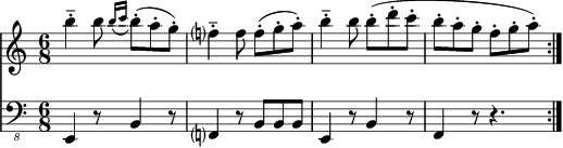(Vous noterez le fa naturel, alors que dans un mode de mi mineur "classique" il y aurait eu un fa ♯ à la clé.)
